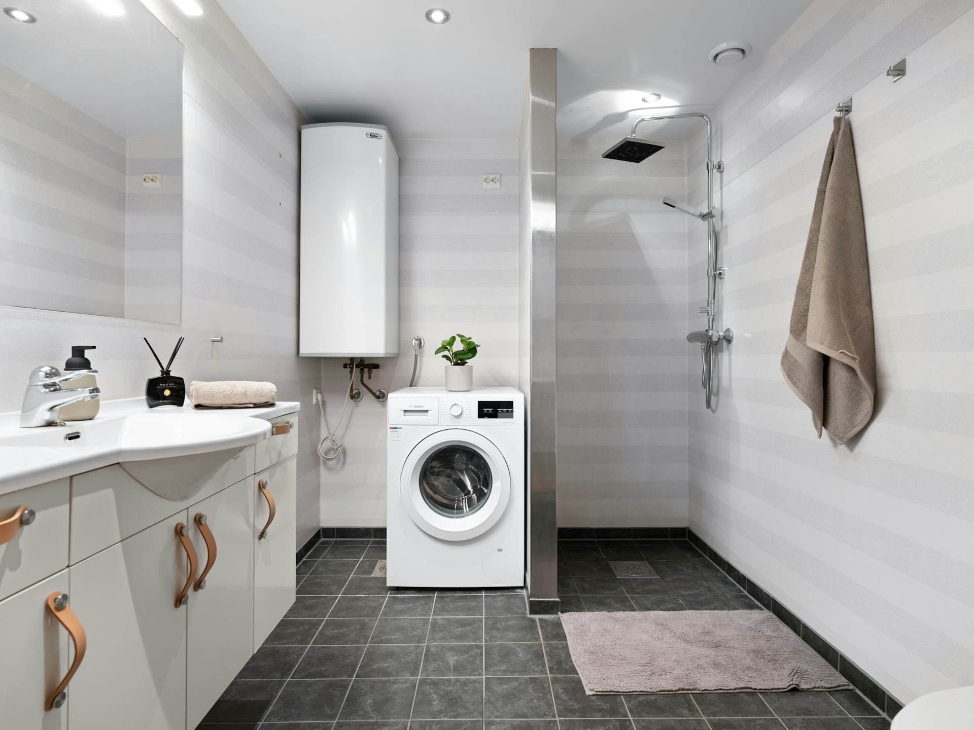 - Tørretumbler: Der findes to hovedtyper – kondenstørretumblere og aftrækstørretumblere. En aftrækstørretumbler kræver et hul i væggen til udblæsning af fugtig luft, mens en kondenstørretumbler blot har brug for god luftcirkulation omkring sig. Hvis du bor i lejlighed, er kondenstypen ofte det eneste realistiske valg.
